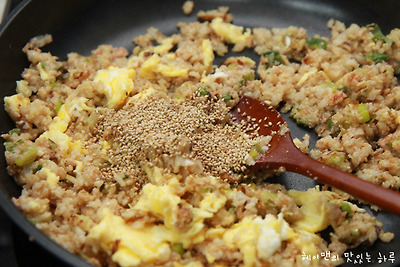 마지막으로 깨소금 솔솔 뿌려주면 완성입니다.