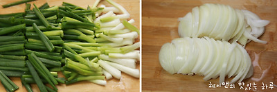 쪽파는 5cm정도 길이로 썰고 양파는 채썰어서 넣어주고요