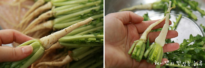 열무는 뿌리채 손질해서 담고