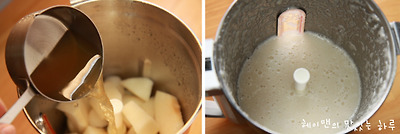 채소육수 한컵을 넣고 곱게 갈아주세요