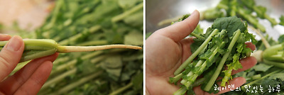 얼갈이는 뿌리부분을 잘라내고