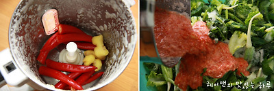 찹쌀풀 1컵, 채소육수 3컵, 홍고추 9개, 생강 한조각, 다진마늘 3T,