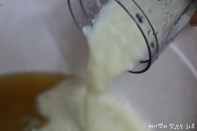 이때 채소육수 한컵을 넣고 갈아주세요~