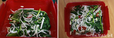 김치통에 담으실때 열무와 양념소들이 골고루 섞일수 있도록
