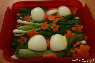 하루 지났는데 벌써 오이색이 맛있게 변했죠? ㅎ