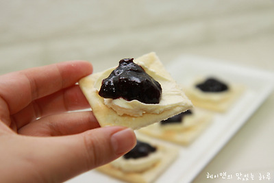 전 크래커에 크림치즈 올려서