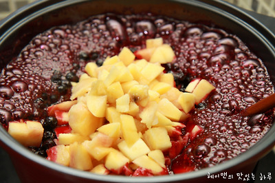 끓이다가 아로니아와 복숭아의 맛이 잘 믹스될 수 있도록