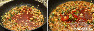 미리 만들어 놓은 양념장과 송송 썬 청양고추를 넣어주세요~