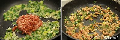 돼지고기다짐육은 청주, 고추가루, 후추가루, 소금을 넣고 밑간을 해주세요~
