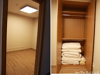 온돌방에는 옷장안에 2명분의 침구세트가 있어서