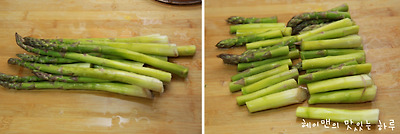 껍질 벗긴 아스파라거스는 3등분으로 잘라 주세요~