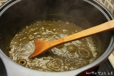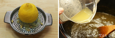 저어 주면서 끓여주다가 마지막에 레몬반개 즙을 내어 넣어주면 됩니다.