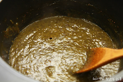 끓이다가 핸드믹서로 곱게 갈아주고요~