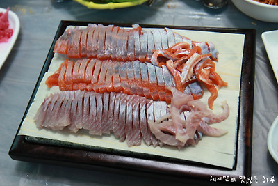 붉은살이 송어회구요