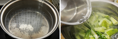 냄비에 천일염을 넣고 팔팔 끓인 후