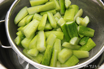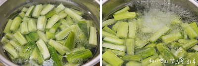 뜨거울때 바로 오이에 소금물을 부어서 절여주세요~