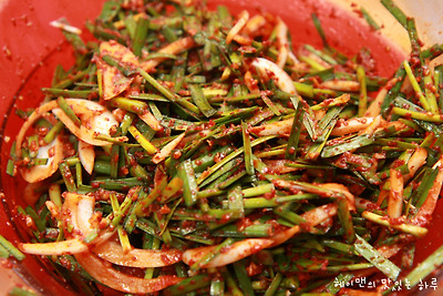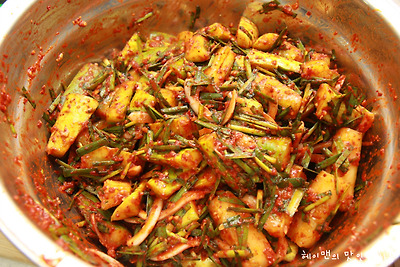 부추반단, 양팝개, 고추가루반컵, 까나리액젓 3T, 매실청 2T, 다진마늘 2T, 다진생강 1t,