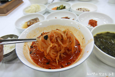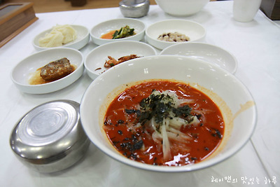 그리고 소면과 반찬들이 한상차림입니다.