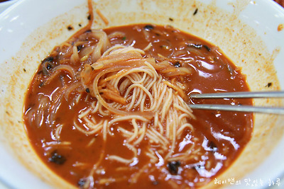 남은 국물에 소면 한덩어리 풍덩~~ ㅎㅎ