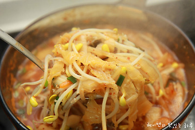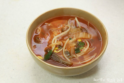 송송 썬 김치 2컵, 콩나물 두줌, 국멸치 한줌, 다시마한쪽,