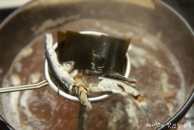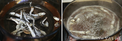 냄비에 물을 붓고 국멸치 한줌을 넣고 끓여주세요