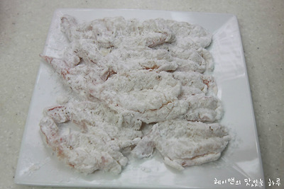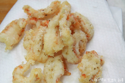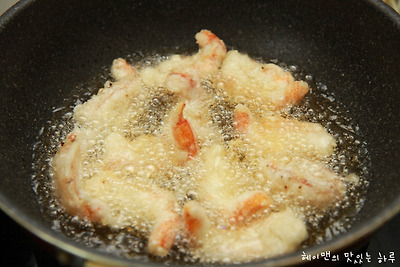 녹말가루를 묻힌 새우는 바로 튀기지 마시고