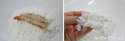 새우에 녹말가루를 골고루 묻혀주세요~