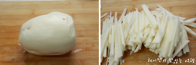 얌빈(히카마) 1개는 껍질을 벗겨서 채썰어 준비해 주고요