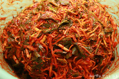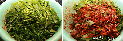 준비해둔 쪽파와 갓을 넣고 버무려주세요~