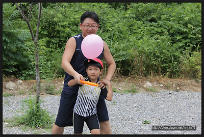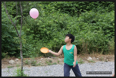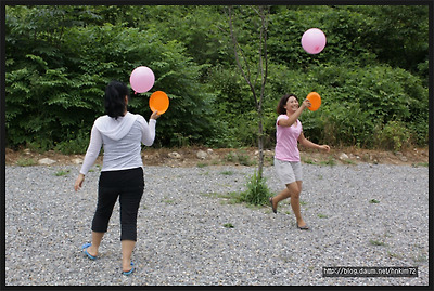 서로 풍선 안 떨어뜨릴려고 열심히 풍선을 튀기면서 달렸는데