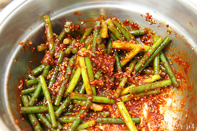 오늘은 고추장소스로 무친 마늘쫑무침을 가지고 왔어요~