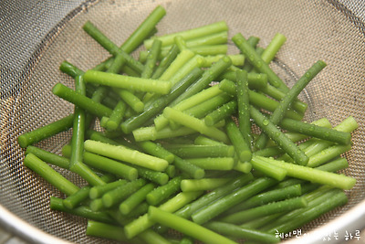 데친 마늘쫑은 찬물에 한번 헹궈준 후
