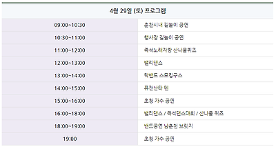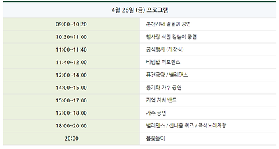 4월 28일부터 30일까지 축제 프로그램입니다.