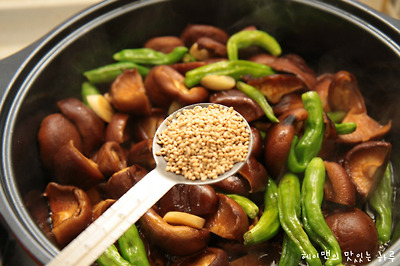 표고버섯 300g, 꽈리고추 한줌, 마늘 9~10개,