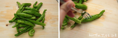 꽈리고추는 포크를 이용해서 구멍을 뚫어 준비해 주세요