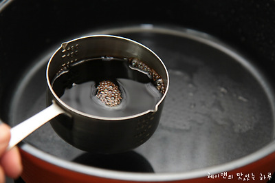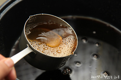 냄비에 간장과 멸치육수 그리고 청주와 올리고당을 넣은 후