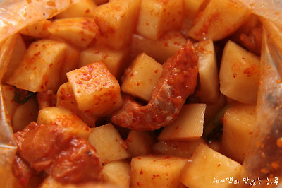 강원도는 명태나 오징어를 많이 넣어서 김치를 한답니다.
