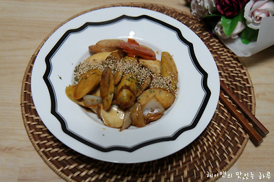 접시에 담고 통깨 솔솔 뿌려주면 끝~