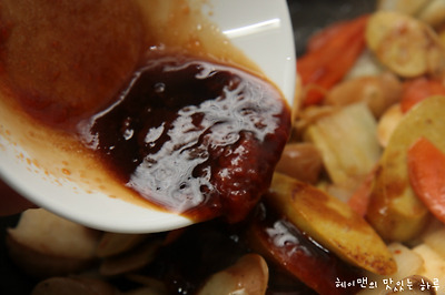 칠리소스 2T, 우스타소스 1T, 간장 1T, 설탕 1T