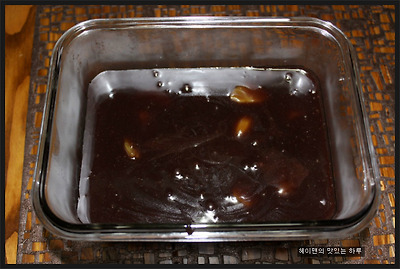 5. 예쁜 모양틀에 넣어서 굳히셔도 되구요~ 저는 그냥 사각통에 넣어서 굳혔어요~