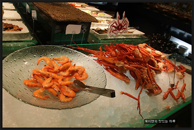 싱싱한 회와 새우 게요리도 많이 있습니다.