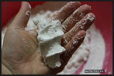 2. 반죽은 주먹으로 쥔 후 흔들어서 흐트러지지 않으면 적당한 겁니다.