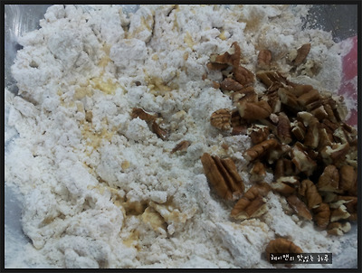 박력분 150g, 베이킹파우더 0.5ts, 귤즙 1Ts, 피칸 30g