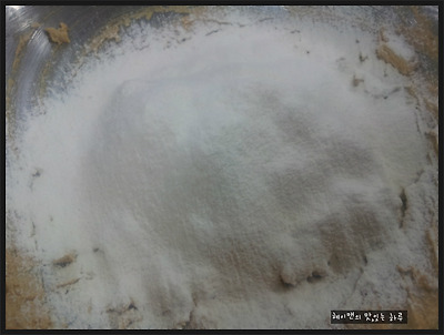 3. 박력분과 베이킹파우더를 체를 쳐서 넣어준 후 자르듯 반죽해 주세요~