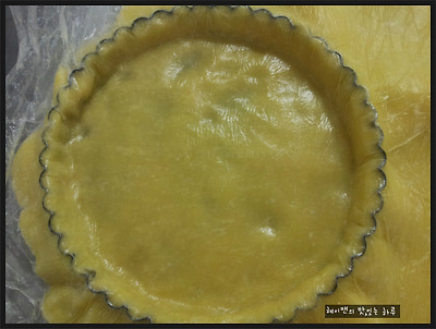 11. 파이틀 바닥에 반죽을 넣고 모양에 맞게 잘라주세요~