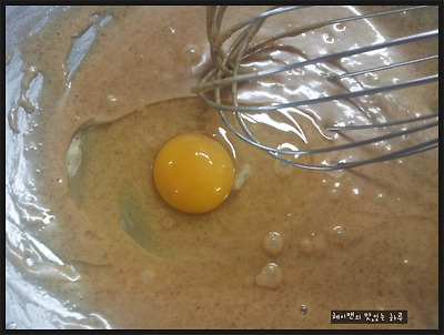 6. 계란을 나눠서 넣고 휘핑해 주세요~