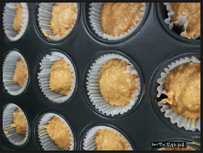 5. 머핀틀에 유산지를 넣고 반죽을 나눠서 넣어준 후