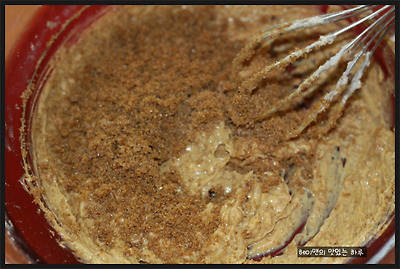 1. 실온에 놔둔 버터와 땅콩버터는 휘핑하여 크림화를 시킨 후 흑설탕을 나눠서 넣으면서 휘핑해주세요~