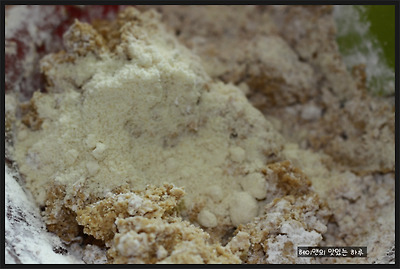 4. 반죽하다가 아몬드 가루를 넣고 날가루가 보이지 않을때까지 자르듯 반죽해 주세요~