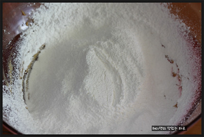 3. 박력분을 체를 쳐서 넣어 준 후 자르듯 반죽해 주세요~